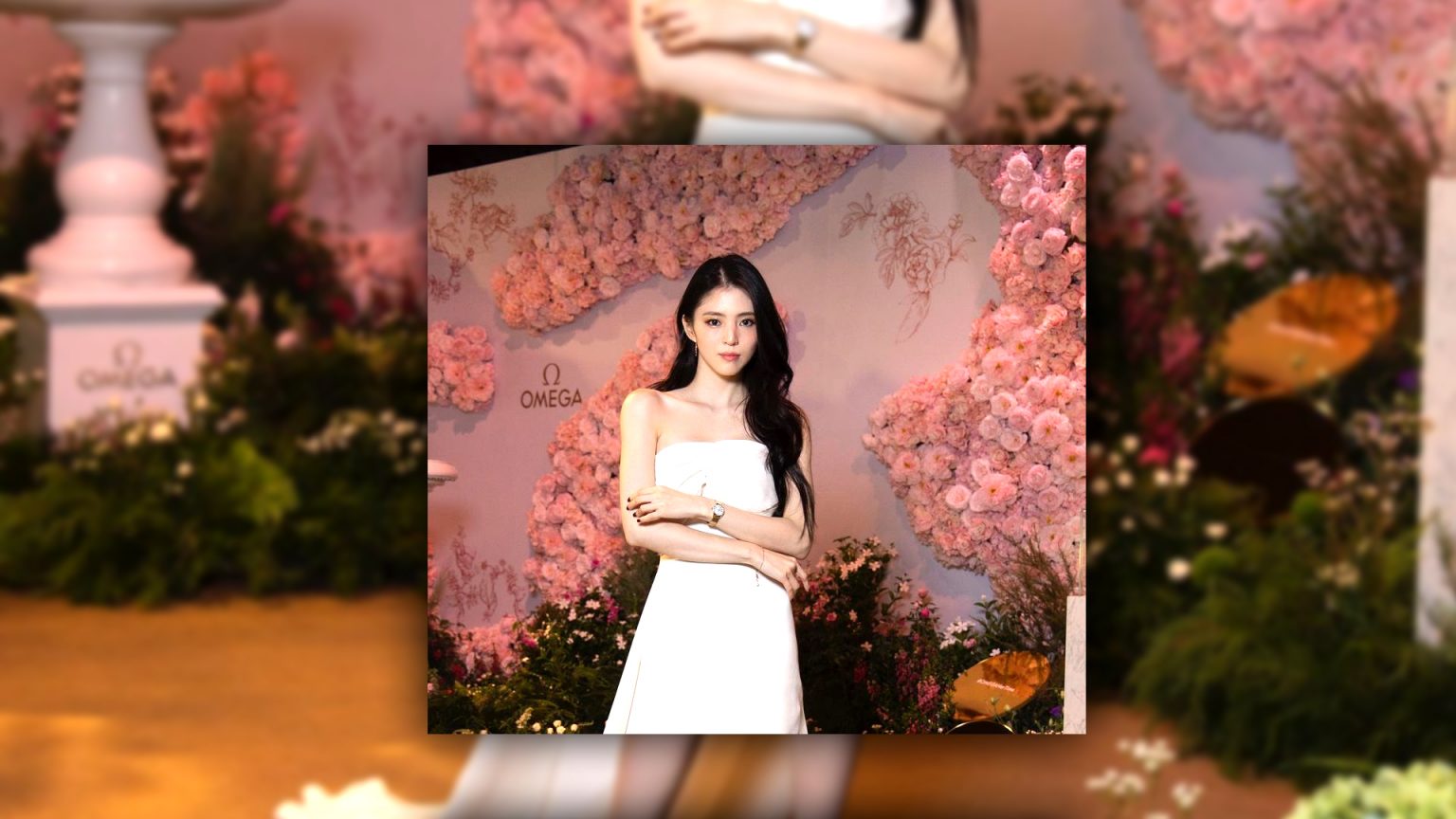 OMEGA AquaTerra รุ่น 150M Co-Axial Master Chronometer หน้าปัดขนาด 34 มิลลิเมตร สี Pink Shell จากคอลเล็กชั่น Novelties ปี 2022 ในภาพเปิดตัวฮันโซฮี ในฐานะแบรนด์แอมบาสเดอร์คนล่าสุดของ OMEGA
