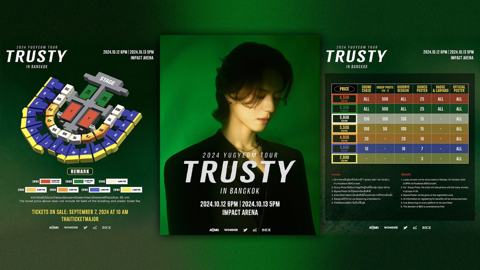 เตรียมฟินกันได้เลย! “ยูคยอม” (YUGYEOM) ศิลปินมากความสามารถภายใต้สังกัด AOMG ที่ทุกคนรอคอย ประกาศกลับมาจัดคอนเสิร์ตที่ประเทศไทยอย่างเป็นทางการในรอบ 2 ปีตามคำสัญญาที่ให้ไว้กับอากาเซ่ (ชื่อแฟนคลับ GOT7) ชาวไทย กับงาน “2024 YUGYEOM TOUR [TRUSTY] IN BANGKOK” คอนเสิร์ตใหญ่จากอัลบั้ม TRUST ME ที่มีคอนเซ็ปต์สุดลึกซึ้ง สามารถสื่อถึงตัวตนของยูคยอมได้เป็นอย่างดี ผ่านหลากหลายบทเพลงที่ถูกร้อยเรียงด้วยความรัก และความเชื่อมั่น แม้ยูคยอมจะดูเป็นน้องเล็กในสายตาของกลุ่มแฟนคลับ แต่ก็เติบโตอย่างมีคุณภาพในฐานะศิลปินเดี่ยว สร้างสรรค์ทุกผลงานอย่างตั้งใจ เป็นคนที่ไว้วางใจได้ของแฟนคลับอยู่เสมอ