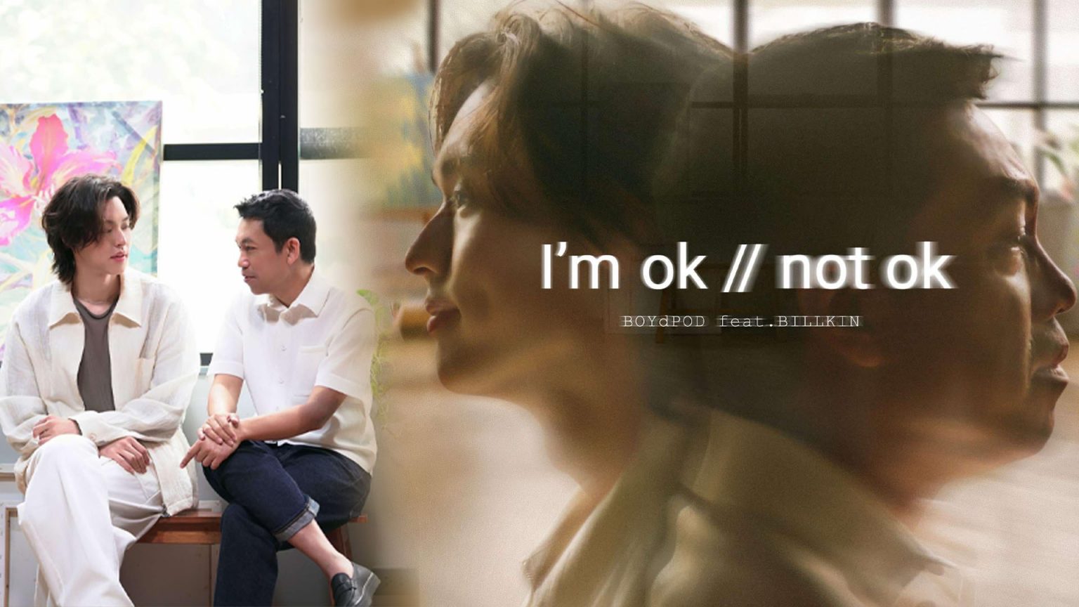 หากความคิดถึงใครบางคนกำลังทำงาน เชื่อว่าบทเพลง “I’m ok // not ok” ซิงเกิลล่าสุดจากอัลบั้ม BOYdPOD//OST Side B เป็นสิ่งที่ตอบถึงความรู้สึกในทุกห้วงอารมณ์เหล่านั้น พร้อมถ่ายทอดผ่านน้ำเสียงเพราะซึ้งกินใจโดย 2 ศิลปินคุณภาพ ป๊อด ธนชัย อุชชิน และ Billkin (บิวกิ้น พุฒิพงศ์ อัสสรัตนกุล) ที่โคจรมาร่วมงานกันเป็นครั้งแรก โดยมี “บอย โกสิยพงษ์” รับหน้าที่จรดปลายปากการังสรรค์เนื้อร้องและทำนอง กับการบอกเล่าเรื่องราวของความคิดถึงใครบางคนที่ซ่อนอยู่ในส่วนลึกของหัวใจ แต่ยังไม่มีโอกาสได้บอกความรู้สึกออกไป สอดคล้องกับท่วงทำนองของเมโลดี้เปียโนในสไตล์ฟังง่ายโดนใจ โดยในพาร์ทของ MV ยังได้ 2 นักแสดงมากความสามารถ “ซันนี่ สุวรรณเมธานนท์” และ “นุ่น ศิรพันธ์ วัฒนจินดา” ที่เคยฝากผลงาน อันโด่งดังกับภาพยนตร์เรื่องเพื่อนสนิท เมื่อ 20 ปีก่อน กลับมาเติมเต็มความคิดถึงความผูกพันธ์รวมทั้งความห่วงใยที่ยากเกินกว่าจะอธิบายได้ด้วยคำพูด แถมยังช่วยเสริมแต่งอารมณ์ส่งผ่านความรู้สึกในทุกมิติให้กับบทเพลงนี้ได้เป็นอย่างดี