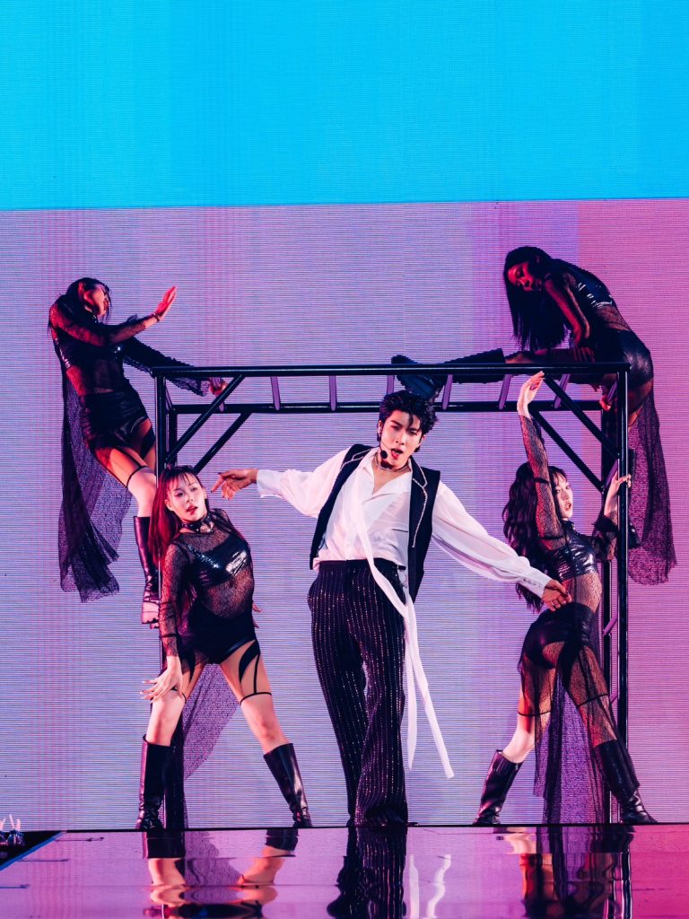 สตั๊นกันต่อในโชว์ของ ปาล์ม กับเพลง Birthday คือหนึ่งในโมเมนต์ที่ทำให้ทั้งฮอลล์เหมือนถูกหยุดเวลา เสน่ห์ของเขาถ่ายทอดผ่านทั้งสายตา การควบคุมจังหวะ และน้ำหนักการเต้นที่แม่นยำจนผู้ชมแทบไม่กะพริบ ยิ่งเมื่อ ปลั๊กกี้ ก้าวขึ้นมาร่วมสเตจ ความดุของเพอร์ฟอร์มานซ์ก็ถูกยกระดับทันที การประสานกันอย่างเป๊ะของทั้งคู่ ทั้งลีลาการเต้น มูฟเมนต์ และพลังบนเวที ทำให้โชว์นี้ดูสมบูรณ์แบบอย่างมีมิติ ส่วน เน ก็โปรยเสน่ห์ชวนกรี๊ดสลบไปกับโมเมนต์ที่เกือบหยุดหายใจด้วยลุคสุดเท่ พร้อมโชว์สกิลการร้องแบบจัดเต็มในเพลง นักเลงเก่า ที่แฟน ๆ กรี๊ดหนักมากกับโชว์ที่ไม่เคยเห็นเนในมุมนี้ และ