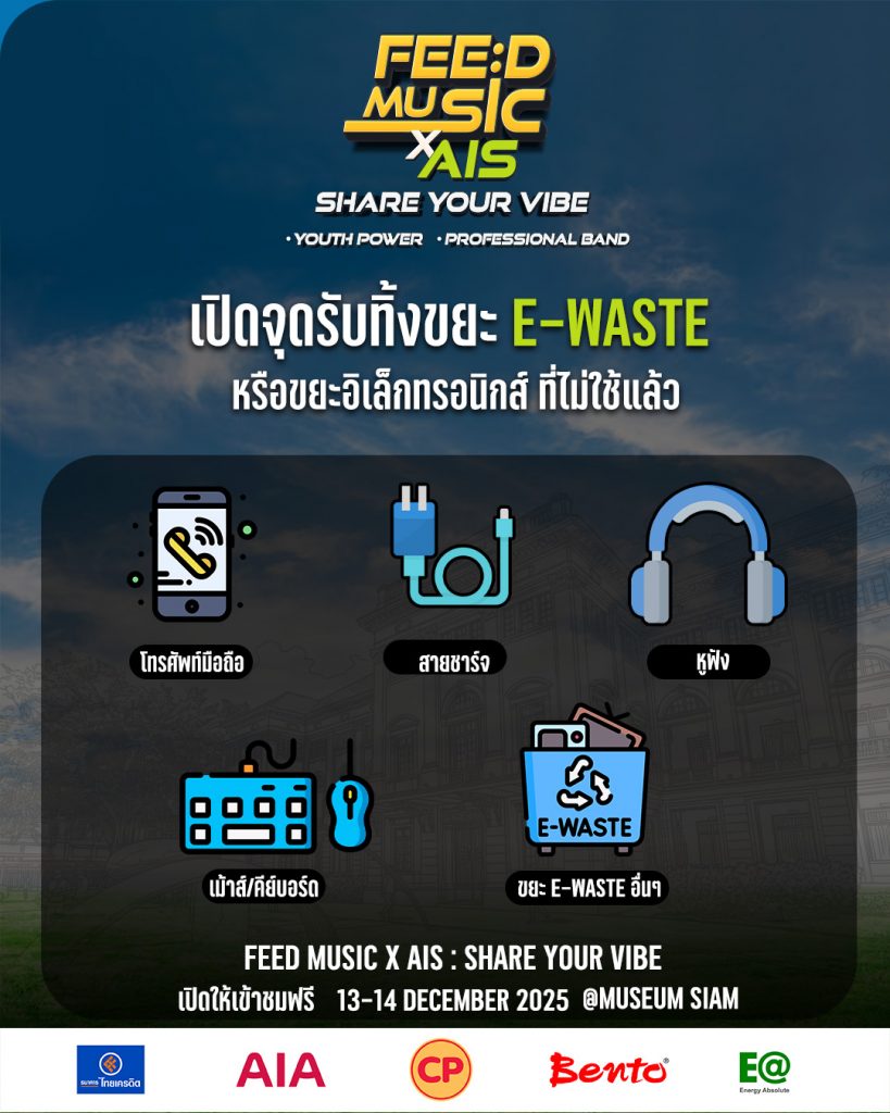 ♻️นอกจากจะมา Share Your Vibe กับดนตรีสุดมันแล้ว! เราอยากชวนทุกคนมาร่วมทำภารกิจเพื่อโลกไปด้วยกันกับ AIS 🌏 เพียงนำขยะ E-Waste หรือขยะอิเล็กทรอนิกส์ ที่ไม่ใช้แล้ว เช่น