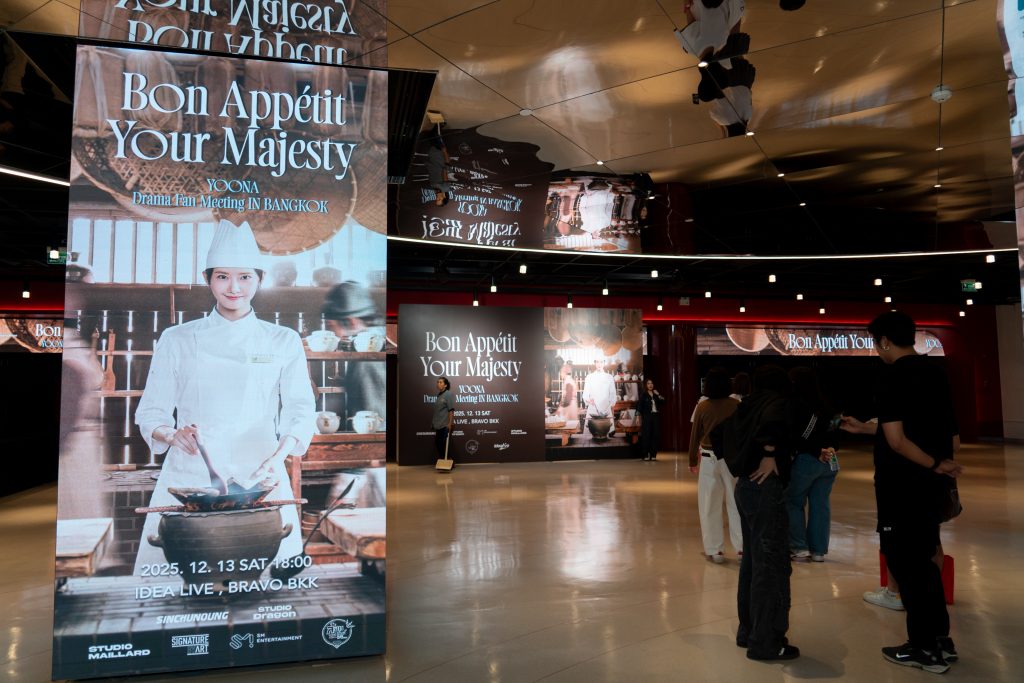 สถานที่จัดงาน IDEA LIVE BRAVO BKK เริ่มคึกคักตั้งแต่บ่ายวันเสาร์ที่ 13 ธันวาคม 2568 เพราะบรรดาคนรัก อิมยุนอา ต่างตื่นเต้นมาร่วมเก็บบรรยากาศหน้างานและรอเข้าชมงาน “Bon appétit, Your Majesty” YOONA Drama Fan Meeting กันอย่างหนาแน่น เมื่อถึงเวลาที่ทุกคนรอคอย อิมยุนอา ในบทบาท หัวหน้าห้องเครื่อง ยอนจียอง ก็ได้ออกมาทักทายทุกคน พร้อมเล่าเรื่องราวความสนุกสนานและน่าประทับใจกับการถ่ายทำ ซีรียส์เรื่อง “Bon appétit, Your Majesty เมนูรักพิชิตใจราชา” ซีรียส์สุดร้อนแรงในปีนี้ ต่อกันด้วยเกมที่แฟนคลับได้มีส่วนร่วมกับอิมยุนอา ทั้งเกมทายใจ และเกมทายท่าทาง ซึ่งสนุกสนานทั้งคนดูและอิมยุนอากันเลยทีเดียว แถมยังมีช่วง Photo Time ให้คนดูทุกคนได้เก็บภาพน่ารักๆ ของอิมยุนอากันอย่างเต็มอิ่ม ไฮไลท์น่าจะอยู่ที่เมนูขนมหวานไทยที่ทาง อิมยุนอา ได้ตั้งใจเตรียมทำเป็นพิเศษเพื่อมาเสิร์ฟแฟนคลับไทยโดยเฉพาะ อย่างเมนูขนมหวานขึ้นขื่อ ของไทย อย่างบัวลอย ที่งานนี้มีผู้โชคดี ได้รับเมนูนี้ ไปทานเพื่อพิสูจน์ฝีมือทำอาหารระดับหัวหน้าห้องเครื่อง ยอนจียอง กันอีกด้วย งานนี้นอกจากจะมาเสิร์ฟความสนุกแล้ว อิมยุนอา ยังเตรียมเพลงมาฝากแฟนๆ ชาวไทยถึง 2 เพลง กับเพลง “I find you” เพลงประกอบซีรียส์ “Bon appétit, Your Majesty เมนูรักพิชิตใจราชา” และเพลง “Deoksugung Stonewall Walkway” เพลงน่ารัก จังหวะสนุกๆ ปิดท้ายงานได้อย่างสมบูรณ์แบบ แต่ความสนุกยังไม่จบแค่นั้น ยังมีกิจกรรม Hibye กับผู้โชคดี สร้างรอยยิ้มและความประทับใจส่งคนดูกลับบ้านไปแบบเต็มอิ่ม