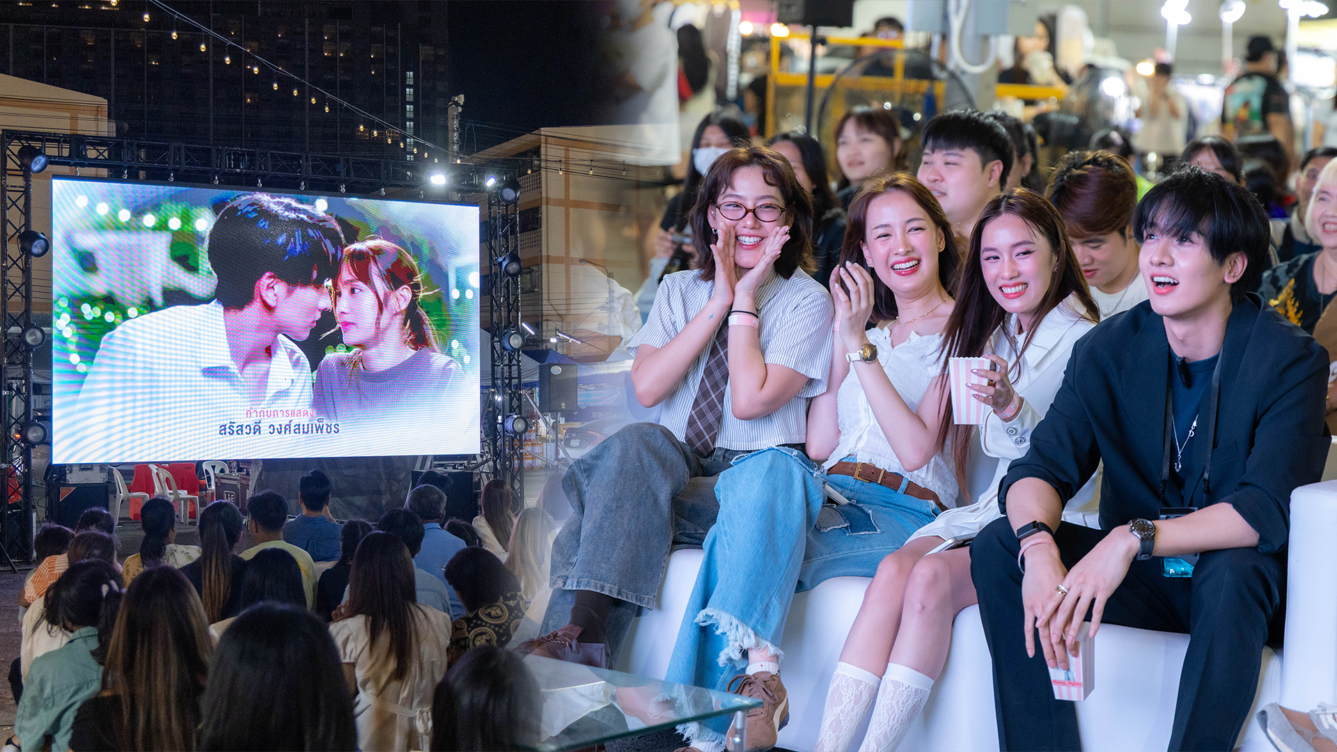 ก่อนจะเข้าสู่การชมละครตอนแรก แฟนๆ ยังได้สนุกกับกิจกรรมแนวงานวัดสุดคลาสสิก ทั้ง ตักไข่, ปาโป่ง, โยนห่วง ที่เรียกเสียงเชียร์ เสียงหัวเราะ และโมเมนต์น่ารักจากนักแสดงแบบรัว ๆ ทำเอาบรรยากาศคึกคักตั้งแต่หัวตลาดยันท้ายตลาด ไฮไลต์อยู่ที่ช่วงฉายละครตอนแรกของ “ก็รักมันปักใจ Money, My Love” บนจอใหญ่กลางตลาด ที่แฟนๆ ได้นั่งดูไป หัวเราะไป พร้อมนักแสดงตัวจริงนั่งลุ้น นั่งแซวกันสดๆ เพิ่มอรรถรสความสนุกแบบที่หาดูไม่ได้ง่ายๆ