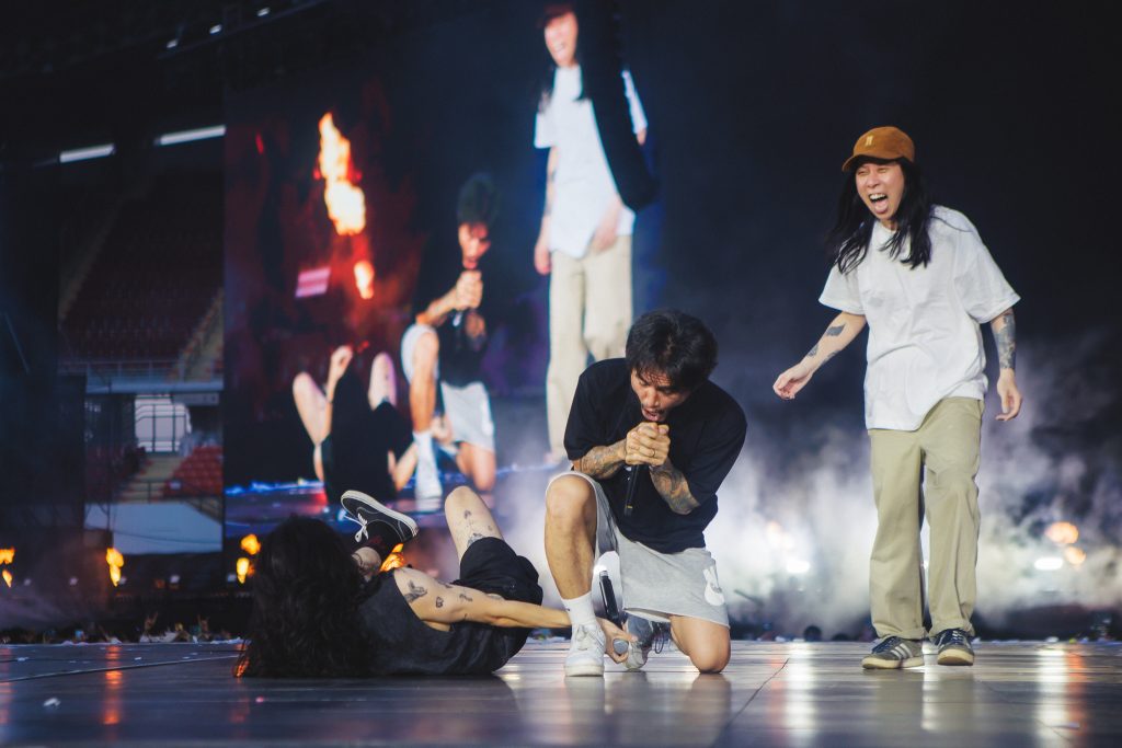 เเละ g27 ก็เสิร์ฟเซอร์ไพรส์อีกด้วยซีนซ่อนกลิ่น ที่ ปาล์มมี่ มาเจอกับเล็ก รัชเมศฐ์ สะกดคนดูให้เคลิ้มไปเลยทีเดียวเเต่ก็ต้องอมยิ้มเพราะทั้งคู่นัดกันเเต่งตัว เหมือนกันทุกตรง แถมยังมีโมเมนต์จับมือถือแขนจนคนดูเขินเเทน เเละวง SWEET MULLET ก็มาเดือดเต็มขั้ว หลังจากจบโชว์ตัวเองยังชวน เก้า RETROSPECT , บอย LOMOSONIC เเละเจ๋ง BIG ASS พร้อมด้วยวง SWEET MULLET มาชวนทุกคนโดดไปในเพลง พลังงานเเสงอาทิตย์ โดยมีซีนโซโล่เท่ๆ จาก บอม YES’SIR DAYS ปะทะน็อต RETROSPECT ในเพลงปลุกใจเสือป่า ก่อนที่นักร้องนำทั้ง 4 วงจะกระโดดใส่คนดูในช่วงจบเพลงผงาดง้ำค้ำโลก เพิ่มดีกรีโชว์ให้ร้อนละอุยิ่งขึ้น จากนั้นก็ถึงคิวของ NUM KALA ที่ชวน โต KALA มาเเจมในเพลงบอกสักคำเเละเพลงเเม่ ปิดด้วยเพลงร้อยล้านวิว หายใจเเล้วไปต่อ กับ LABANOON ที่มาในชุดสีสันสดใสเหนือความคาดหมาย พร้อมจัดแตรวงมาร่วมโชว์ เพิ่มสีสันความสนุกกับเพลงเร็วสุดฮิตล้วนๆ และไหนๆก็ใส่ชุดเต็มจัดจ้านขนาดนี้แล้ว LABANOON ก็เลยชวน ต้า เเละ สอง PARADOX มาโจ๊ะกันทั้งราชมังฯ โดยมีการนำสองเพลงฮิตอย่างของวงอย่างศึกษานารี และ น้องเปิ้ล มารวมกันกลายเป็นเพลงใหม่ “ศึกษาน้องเปิ้ล” และแจมกันต่ออีกเพลง ในเพลง “คิดอะไรอยู่” เรียกเสียงหัวเราะจากผู้ชมได้ไม่น้อย ก่อนที่เสียงบั้งไฟจะดังขึ้น JOEY PHUWASIT ปรากฏตัวพร้อมพิณคู่ใจขึ้นเวทีมาแบบม่วนๆ แถมยังชวน ฮาย-เซน PAPER PLANES มาร่วมแจมเพลงสาริกาลิ้นทอง เรียกเสียงคนดูให้ร้องตามกันทั้งสนาม