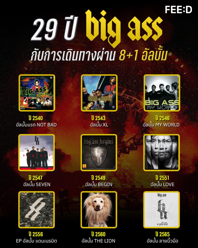 FEED จะพาสำรวจเส้นทาง 29 ปี Big Ass กับ 8+1 อัลบั้ม ที่หล่อหลอมตัวตนของวงร็อกระดับตำนานที่สร้างคลัง “เพลงฮิตตลอดกาล” ให้เราได้ร้องตามกันทุกยุคสมัย