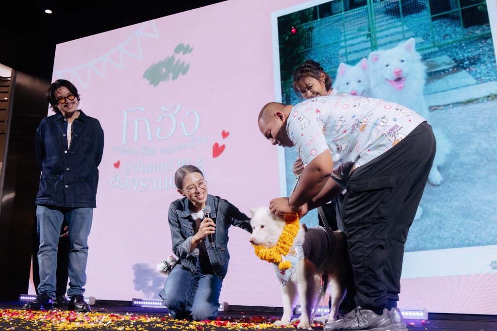 ไฮไลต์ที่เรียกเสียงฮือฮาและทำเอาเหล่าทาสใจละลาย คือช่วงเวลาเปิดตัว “ครอบครัวตัวจริง” ของนักแสดงสี่ขาผู้รับบท ‘โกฮัง’ ทั้ง 3 ช่วงวัย ไม่ว่าจะเป็น น้องโคริ (โกฮังวัยเด็ก), น้องมีโชค (โกฮังวัยหนุ่ม), ลุงหิมะ (โกฮังวัยแก่) และน้องตี๋น้อย (สตั๊นท์แมนโกฮัง) เพื่อเป็นการขอบคุณที่คุณพ่อคุณแม่ของเจ้าหมาทั้งสี่ที่ไว้ใจให้น้องมาร่วมโปรเจกต์หนังเรื่องนี้ และเป็นบ้านที่อบอุ่นให้น้องๆ จากนั้นเข้าสู่ช่วงเวลาสุดซาบซึ้ง เมื่อเหล่าผู้กำกับ โปรดิวเซอร์ และนักแสดง คล้องมาลัยและโปรยดอกไม้อวยพรให้เจ้าหมาทั้งสี่ มีสุขภาพที่แข็งแรง และมีความสุขกับบ้านที่แท้จริงของพวกเขา ต่อด้วยพ่อแม่ของเจ้าหมาทั้งสี่ลงมือแต้มแป้งดินสอพองที่หน้าผากลูกๆ เพื่อให้พร พร้อมส่งต่อความรักและความปรารถนาดีให้กับน้อง ๆ ท่ามกลางรอยยิ้มที่อบอวลไปทั้งงาน ปิดท้ายโมเมนต์ความประทับใจ ที่สะท้อนถึงคำว่า “บ้าน” ที่ไม่ได้จำกัดอยู่แค่ในจอภาพยนตร์ แต่ยังคงเติบโตและเดินทางต่อไปในชีวิตจริง