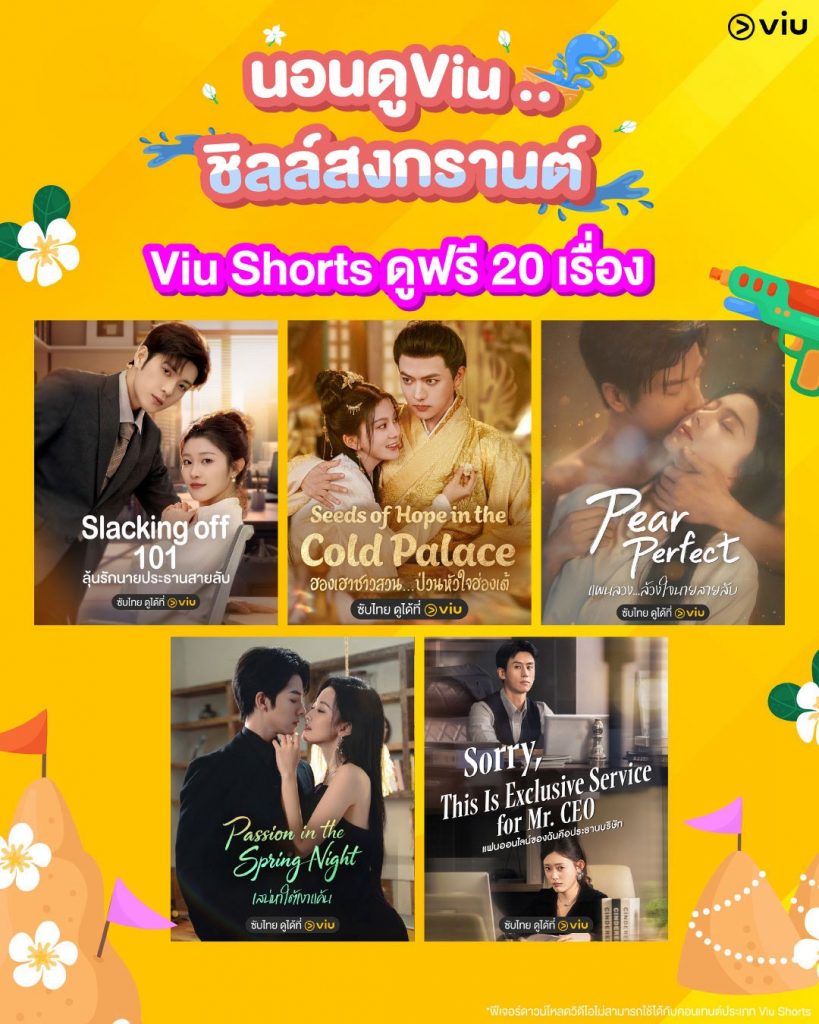 สงกรานต์นี้ ไม่ว่าจะเป็นสายฟิน สายลุ้น หรือสายดราม่า Viu ก็จัดมาให้ครบทุกอารมณ์ในแพลตฟอร์มเดียว อีกทั้งยังดูซีรีส์ฟรีบนทีวีได้แล้ว แค่เตรียมหมอน ผ้าห่ม และขนมให้พร้อม แล้วกด Play!ยาว ๆ รับรองว่าคุณจะดูเพลินจนลืมเวลาแน่นอน!