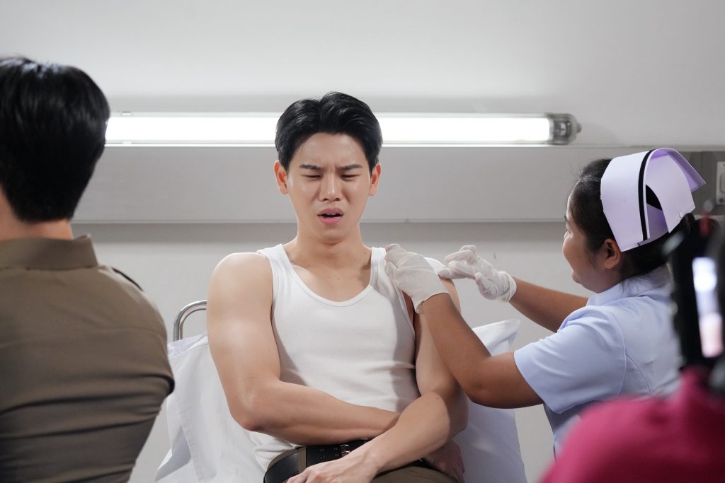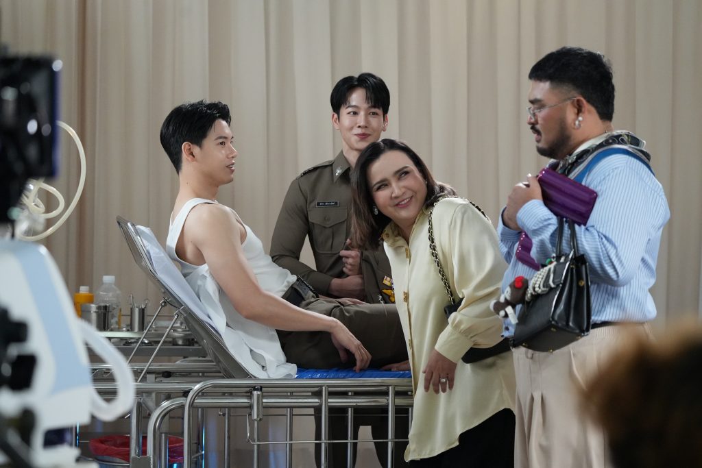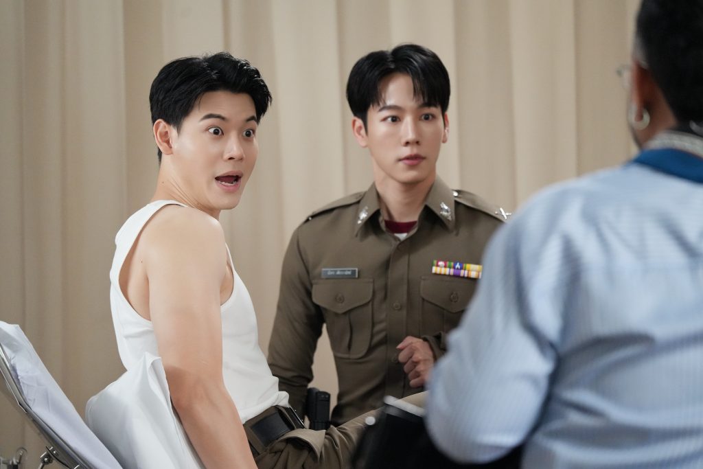 ส่วน “วอร์ วนรัตน์” เผยว่า “คิวแรกหลังจากหายจากกองถ่ายไปนาน ก็คิดถึงบรรยากาศกองถ่ายเหมือนกันนะ ส่วนคนแรกที่ผมเข้าฉากด้วย ก็คือหยิ่นเลย ง่าย ๆ เลยครับ เพราะถึงจะไม่ได้ถ่ายซีรีส์ด้วยกันมาสักพัก แต่ก็เจอกันบ่อย ๆ ทั้งอีเว้นท์ ทั้งงานอื่น ๆ เลยไม่ต้องปรับอะไรมาก รับรองเรื่องนี้สนุกแน่นอนครับ ฝากทุกคนกับซีนนี้ด้วยนะครับ