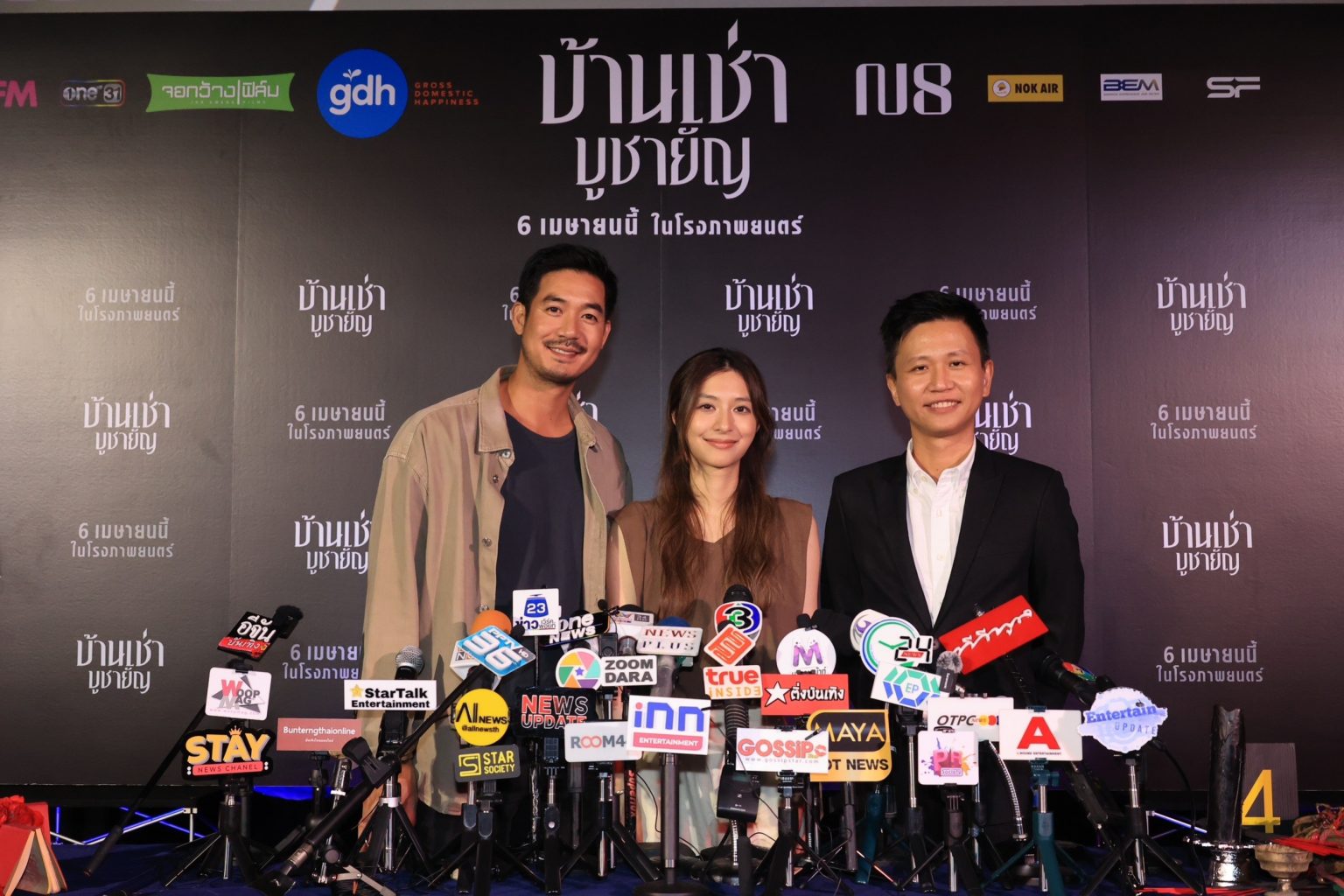 ‘จีดีเอช’ ร่วมกับ ‘เอ็นเอท สตูดิโอ’ จัดงานแถลงข่าวเปิดตัวหนังผีเรื่องใหม่ ‘บ้านเช่า..บูชายัญ’ โดยเนรมิต SF World Cinema (โรงภาพยนตร์ที่ 9) ชั้น 9 ศูนย์การค้าเซ็นทรัลเวิลด์ ตั้งโต๊ะจำลองสถานการณ์แถลงข่าวคดีบ้านเช่าที่เกิดเหตุสะเทือนขวัญ โดยมี 2 สามี ภรรยา ‘กวิน’ รับบทโดย เวียร์ ศุกลวัฒน์ คณารศ และ ‘หนิง’ รับบทโดย มิว นิษฐา จิรยั่งยืน มาร่วมให้ปากคำถึงความเสียหายจากคดี ‘บ้านเช่า..บูชายัญ’ โดยมี อ๊อฟ ชัยนนท์ หาญคีรีรัตน์ รับหน้าที่เป็นผู้ดำเนินการสำหรับการแถลงข่าวของคดีนี้