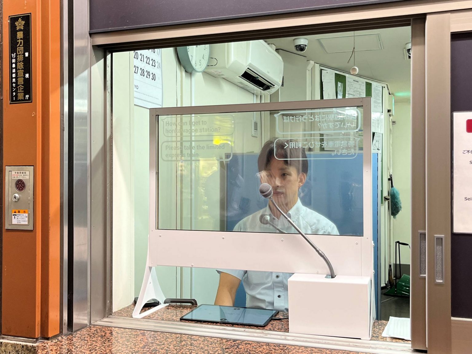อุปกรณ์ดังกล่าวชื่อว่า VoiceBiz พัฒนาขึ้นโดยบริษัท Toppan ผู้ใช้งานสามารถพูดคุยกับเจ้าหน้าที่ประจำสถานีผ่านไมโครโฟนจากนั้นหน้าจอจะปรากฏข้อความสิ่งที่พวกเขาพูดเป็นภาษาญี่ปุ่นเพื่อให้เจ้าหน้าที่เข้าใจ และเมื่อเจ้าหน้าที่ตอบคำถามกลับมาระบบจะแปลอีกครั้งเป็นภาษาที่เลือกไว้ เบื้องต้นสามารถแปลได้มากถึง 11 ภาษาเลยทีเดียว