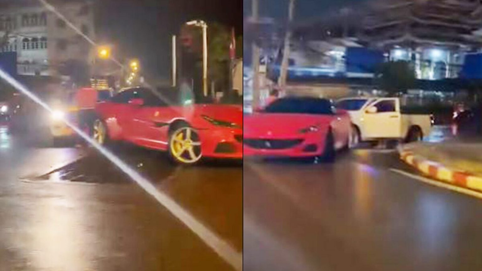 โดยผู้เห็นเหตุการณ์ดังกล่าวได้เขียนเอาไว้สั้นๆ ว่า “โรลส์รอยซ์ยังเคลียกันไม่จบ วันนี้กดเฟอร์รารี่อีกแล้ว “ ท่ามกลางคอมเมนต์ของชาวเน็ต ที่เข้าไปถามเหตุการณ์ พร้อมระบุว่า “คันนี้น่าจะFerrari Portofino M ราคา21ล้านบาท เอนจอยครับผม”
