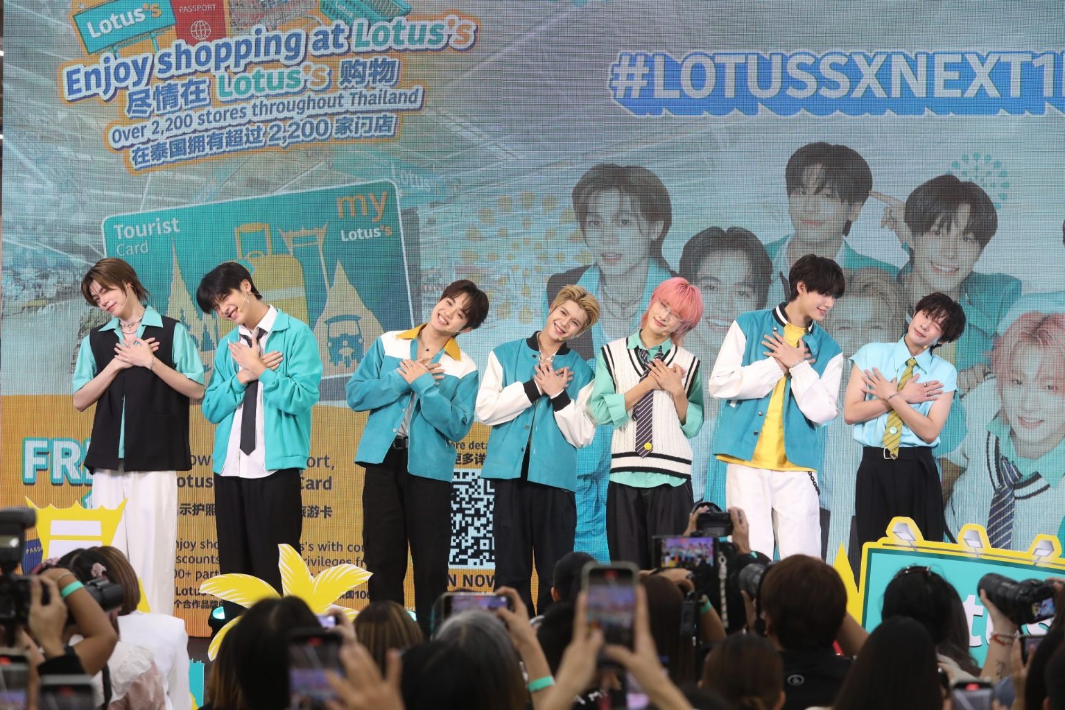 บรรยากาศภายในงานเต็มไปด้วยความคึกคักและเหล่าแฟนด้อม NexT1DE ที่ผลึกกำลังมาร่วมสร้างสีสัน และให้กำลังใจ 7 หนุ่มสุดฮอต ไม่ว่าจะเป็น DORN (ดรณ์), THI-O (ไทโอ), HU YETAO (หูเย่เทา), SHEN (เซิน), OMAR (โอมาร์), XIONG (ฉง) และ YAO ZIHAO (เหยาจื่อหาว) โดยงานนี้ ได้พิธีกรตัวแม่ “โอปอล์ ปาณิสราอารยะสกุล” กล่าวต้อนรับ”คุณวรวรรณ เพียรลิขิตวงศ์” ผู้อำนวยการอาวุโสสายงานการตลาดธุรกิจโลตัส ประกาศเปิดตัว “NexT1DE” (เน็กซ์ไทด์) 7 หนุ่มผู้ชนะการประกวดรายการ “CHUANG Asia Season 2” ที่มาจากผู้เข้าประกวดทั่วภูมิภาคเอเชีย โดยมีเซ็นเตอร์ของวงเป็นศิลปินชาวไทยที่จะเป็นตัวแทนของคนไทย เชิญชวนแฟนๆ ทั่วเอเชียให้มาเยือนประเทศไทย และยังมีน้องๆ สมาชิกชาวต่างชาติของวงที่เป็นตัวแทนนักท่องเที่ยวที่มาร่วมแชร์ประสบการณ์ดีๆกับประเทศไทยไปด้วยกัน การเปิดตัว ‘Friends of Lotus’s’ ครั้งนี้ จึงไม่ใช่แค่การเซอร์ไพรส์ที่ถูกใจแฟนคลับ แต่ยังสะท้อนความมุ่งมั่นของโลตัสในการลุยตลาดอินเตอร์ พร้อมยกระดับประสบการณ์ช้อปปิ้งของนักช้อปต่างชาติอย่างครอบคลุม