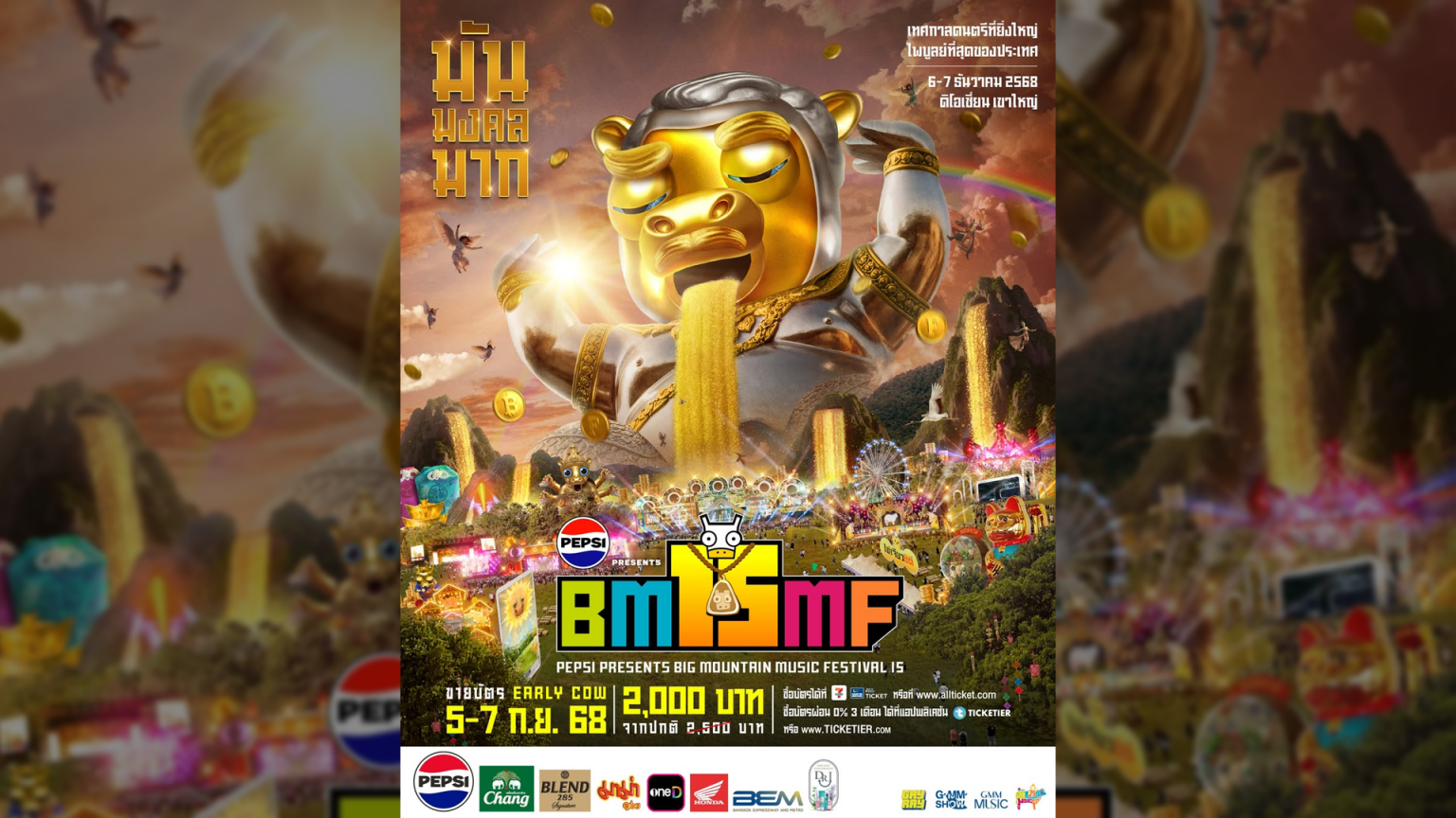 นับถอยหลังอีกไม่นานเกินรอ เทศกาลดนตรีที่ใหญ่ที่สุดในไทยกำลังจะกลับมาอีกครั้ง ในวันเสาร์ที่ 6 และวันอาทิตย์ที่ 7 ธันวาคม 2568 ณ ดิ โอเชียน เขาใหญ่ กับ “Pepsi presents Big Mountain Music Festival ครั้งที่ 15” (เป๊ปซี่ พรีเซนต์ บิ๊กเมาน์เท่น มิวสิค เฟสติวัล ครั้งที่ 15) โดยผู้จัดที่สร้างความประทับใจให้ผู้เข้าร่วมงานมาอย่างต่อเนื่องทุกปีอย่าง “GAYRAY” หน่วยงานภายใต้ GMM SHOW