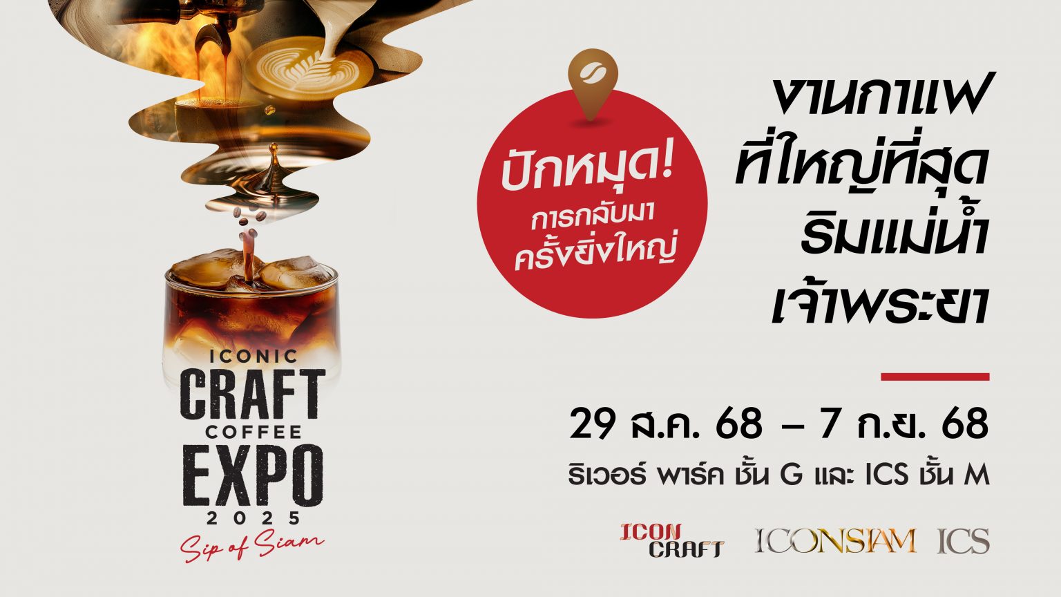 ด้วยการเติบโตที่น่าจับตาของตลาดกาแฟ ไอคอนสยาม ในฐานะ ‘Global Experience Destination’ จึงปักหมุดเป็น ‘Global Coffee Destination’ โดยได้รับความร่วมมือจากพันธมิตรภาครัฐและเอกชน ได้แก่ กระทรวงพาณิชย์, กรมพัฒนาธุรกิจการค้า, กรมทรัพย์สินทางปัญญา, สมาคมกาแฟไทย, UCC , MONIN, พีเบอร์รี่ ไทย, ซีพี เมจิ, Zacapa, MINUS NINE, Prom Chim Coffee Academy, True, เครือเจริญโภคภัณฑ์, ไอคอนคราฟต์ และไอซีเอส จัดงาน “ICONIC CRAFT COFFEE EXPO 2025” ขึ้นระหว่างวันที่ 29 สิงหาคม – 7 กันยายน 2568 ณ ริเวอร์ พาร์ค ไอคอนสยาม ต่อเนื่องถึง Event Space ชั้น M ไอซีเอส ภายใต้คอนเซปต์ “Sip of SIAM – สัมผัสประสบการณ์แห่งแรงบันดาลใจกาแฟไทยและโลก” โดยเป็นงานแรกและงานเดียวที่รวมความเป็นที่สุดเกี่ยวกับกาแฟมาไว้ด้วยกันกว่า 100 ร้านค้า 1,000 เมนู ทั้งร้านกาแฟดังจากทั่วไทย เมล็ดกาแฟหายากจากทั่วโลก เรื่องราวจากเหล่าบาริสต้าแถวหน้าในแวดวงกาแฟไทยและโลก เมนูกาแฟสุดเอ็กซ์คลูซีฟ พร้อมนำเสนอวัฒนธรรมกาแฟครบทุกมิติ ณ ริมฝั่งแม่น้ำเจ้าพระยา เพื่อมอบประสบการณ์สุดพิเศษให้กับคนรักกาแฟ พร้อมสร้างเครือข่ายในการต่อยอดธุรกิจสำหรับผู้ประกอบการ และยกระดับอุตสาหกรรมกาแฟไทยทั้งระบบให้ก้าวไกลสู่สากล