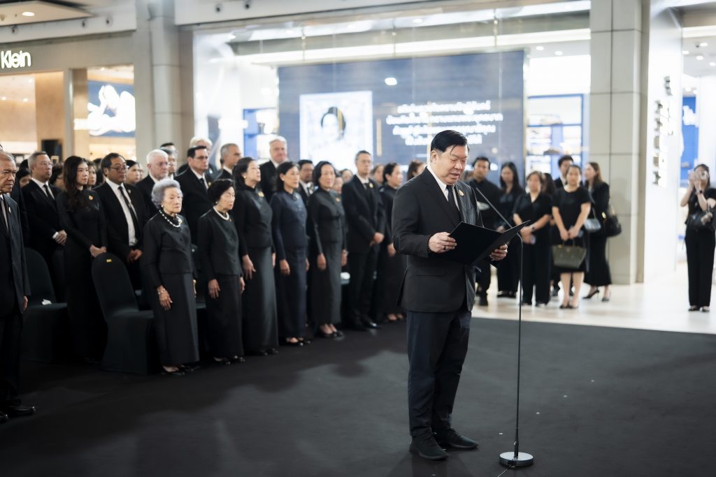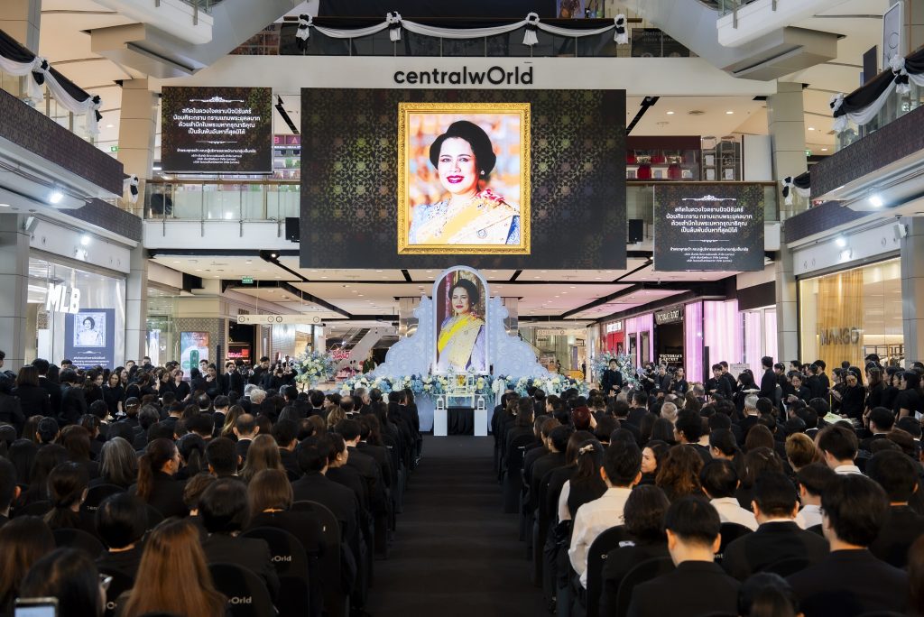 พิธีถวายความอาลัยจัดขึ้น ณ ลานอีเดน ชั้น 1 ศูนย์การค้าเซ็นทรัลเวิลด์ โดยมี คุณมุกดา จิราธิวัฒน์ ประธานในพิธี พร้อมด้วยดร.ศุภชัย พานิชภักดิ์ และคุณพิชัย จิราธิวัฒน์ นำกล่าวน้อมถวายความอาลัย พร้อมเชิญผู้ร่วมพิธียืนสงบนิ่งเป็นเวลา 93 วินาที เพื่อรำลึกถึงพระมหากรุณาธิคุณอย่างหาที่สุดมิได้ จากนั้นประธานในพิธีและคณะผู้บริหารได้วางพวงมาลัยถวายความอาลัย ตามด้วยพนักงานกลุ่มเซ็นทรัลจากทุกหน่วยงานร่วมวางดอกมะลิ บริเวณเบื้องหน้าพระฉายาลักษณ์เพื่อแสดงความอาลัยอย่างสุดซึ้งและน้อมสำนึกในพระมหากรุณาธิคุณอันหาที่สุดมิได้
