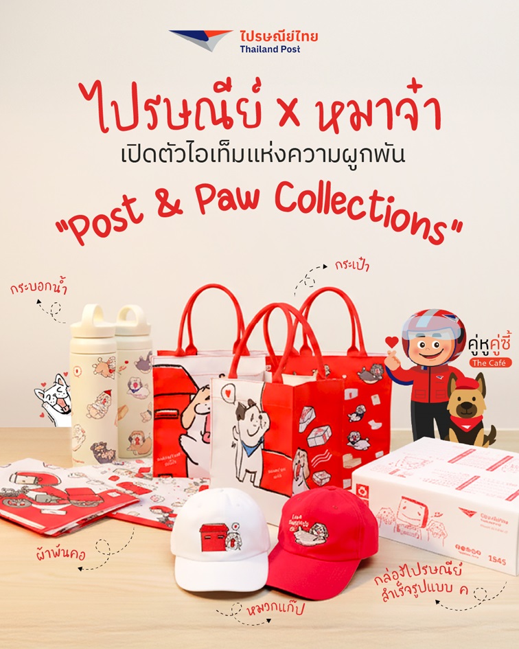 บริษัท ไปรษณีย์ไทย จำกัด จับมือหมาจ๋าคอลแลบส์คอลเลคชันส์สุดพิเศษ “Post & Paw Collections” สะท้อนภาพความสัมพันธ์แสนอบอุ่นระหว่างพี่ไปรฯ กับเหล่าสัตว์เลี้ยงประจำบ้าน เปิดจำหน่ายสินค้าพร้อมโปรโมชันสุดเอ็กซ์คลูซีฟเฉพาะภายในงาน “คู่หู คู่ซี้ เดอะคาเฟ่” ที่เนรมิตไปรษณีย์กลาง บางรัก ให้กลายเป็นคาเฟ่สุดน่ารัก เปิดพื้นที่ให้คนรักสัตว์พาสัตว์เลี้ยงคู่ซี้มาร่วมกิจกรรม ระหว่างวันที่ 29-30 พฤศจิกายน 2568 พร้อมเดินหน้าตอกย้ำการเป็นมากกว่าผู้ให้บริการส่งพัสดุ แต่คือตัวแทนการส่งความรู้สึกดี ๆ รับเทรนด์คนไทยที่ให้ความสำคัญกับสัตว์เลี้ยงในฐานะสมาชิกคนสำคัญของครอบครัวมากขึ้น