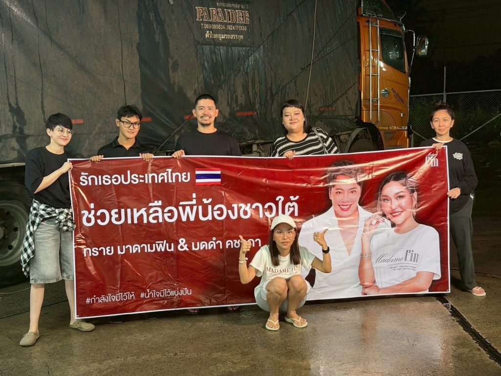 โดย มดดำ คชาภา และ ทราย มาดามฟิน ได้ซื้อเรือ 350,000 บาท มอบให้กับเจ้าหน้าที่เพื่อช่วยเหลือประชาชน ที่ยังติดค้างอยู่ตามบ้านเรือน ไม่สามารถออกจากพื้นที่ได้ รวมถึงอาหารแห้งต่างๆ น้ำดื่ม ของใช้จำเป็น ซึ่ง ทราย มาดามฟิน ได้ลงพื้นที่ช่วยพี่น้องชาวหาดใหญ่ด้วยตนเอง มีเจ้าหน้าที่ดูแลทุกคนอย่างเต็มกำลัง