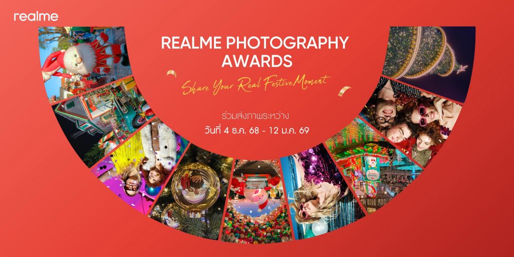 realme (เรียลมี) แบรนด์สมาร์ตโฟนเพื่อคนรุ่นใหม่ที่เติบโตเร็วที่สุดในโลก กลับมาสร้างแรงสั่นสะเทือนครั้งใหญ่ให้วงการไลฟ์สไตล์ดิจิทัลอีกครั้ง ด้วยการเปิดตัวแคมเปญถ่ายภาพระดับ สากล “realme Photography Awards“ ภายใต้คอนเซป “SHARE YOUR REAL MOMENT” ที่ชวนผู้ใช้ realme ทั่วโลก รวมถึงชาวไทย มาร่วมปล่อยพลังครีเอทีฟ เก็บโมเมนต์ที่เป็น “ตัวตนจริงของคุณ” ผ่านการประกวดภาพถ่ายออนไลน์สุดยิ่งใหญ่ ที่เปิดพื้นที่ให้ทุกคนได้เล่าเรื่องในแบบของตัวเองอย่างอิสระ พร้อมเติมความสนุกให้เดือดกว่าเดิมด้วยกิจกรรม พิเศษ “Real Festive Moments” บนเพจเฟซบุ๊ก realme Thailand ที่ให้แฟน ๆ ได้ฉลองโมเมนต์ดี ๆ ในช่วงเทศกาลส่งท้ายปีของแห่งความสุขแบบมีสไตล์ และเปล่งประกายในแบบที่เป็นคุณที่สุด
