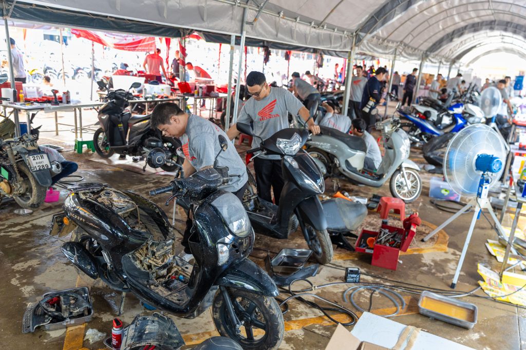 นอกจากนี้ ไทยฮอนด้ายังได้ช่วยเหลือด้านการฟื้นฟูยานพาหนะ ด้วยการระดม ทีมช่างอาสาสมัครจากศูนย์บริการฮอนด้าทั่วประเทศกว่า 200 คน ลงพื้นที่ตั้ง จุดให้บริการช่วยเหลือซ่อมรถจักรยานยนต์ฟรี จำนวน 9 จุด ระหว่างวันที่ 8–14 ธันวาคม 2568 โดยตลอดระยะเวลา 7 วันของการให้บริการ สามารถช่วยซ่อมแซมรถจักรยานยนต์ของประชาชนได้รวมทั้งสิ้น 4,011 คัน ครอบคลุมทั้งกรณีความเสียหายเล็กน้อยและกรณีความเสียหายหนัก เพื่อให้รถจักรยานยนต์สามารถกลับมาใช้งานได้อย่างปลอดภัย และสนับสนุนการเดินทางและการประกอบอาชีพในช่วงฟื้นฟูหลังอุทกภัย