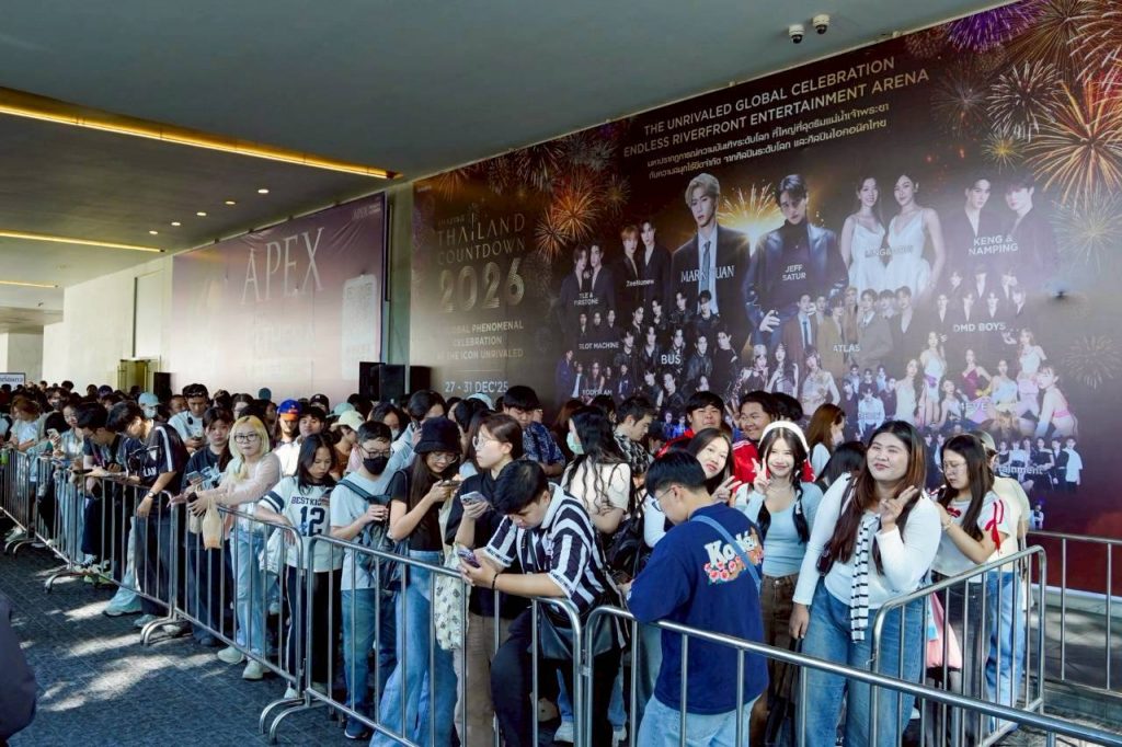 บรรยากาศวันแรก 27 ธ.ค. 68 ของงาน “Amazing Thailand Countdown 2026 at ICONSIAM” เริ่มต้นขึ้น แฟนคลับศิลปิน T-POP และนักท่องเที่ยวทั้งชาวไทยและชาวต่างชาติ ต่างทยอยเดินทางมาเข้าแถวเพื่อรับบัตรและรับคิวเข้างานกันอย่างต่อเนื่องตั้งแต่ช่วงเช้า บรรยากาศเต็มไปด้วยความคึกคัก เพื่อเตรียมตัวสำหรับค่ำคืนแห่งความสนุกส่งท้ายปี