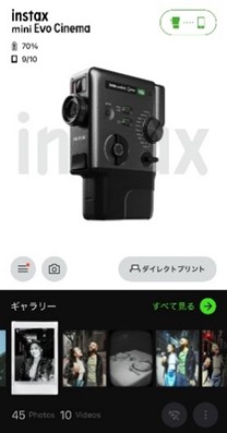 เมื่อใช้งานคู่กับแอปพลิเคชัน instax mini Evo จะทำให้ mini Evo Cinema เป็นไอเทม 3-in-1 ที่ครบเครื่อง ทั้งถ่ายวิดีโอ ถ่ายภาพนิ่ง และเครื่องพิมพ์ภาพจากสมาร์ตโฟนได้ในตัวเดียว