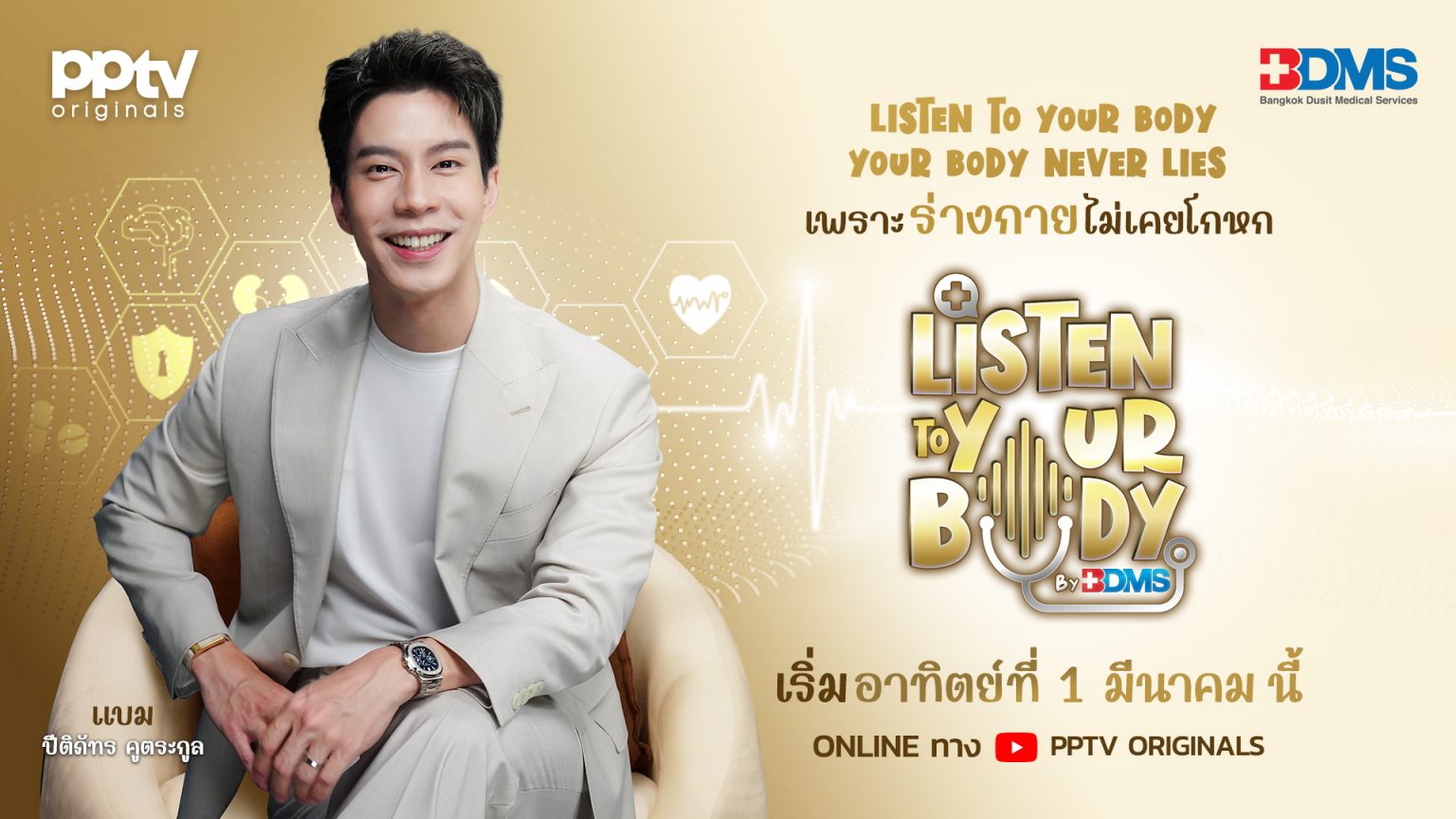 เพราะสุขภาพไม่ใช่เรื่องไกลตัว! บริษัท กรุงเทพดุสิตเวชการ จำกัด (มหาชน) หรือ BDMS ชวนทุกคนมาฟังเสียงร่างกายของตัวเอง ผ่านพอดแคสต์สุขภาพ ที่จะพาคุณถอดรหัสทุกสัญญาณจากร่างกายให้เข้าใจง่าย และใกล้ตัวกว่าที่เคย กับ ‘Listen to Your Body by BDMS’ ดำเนินรายการโดย ‘แบม – ปีติภัทร คูตระกูล’ ตัวแทนคนรุ่นใหม่ที่พร้อมจะมาตั้งคำถามแทนทุกคนแบบตรงใจ พร้อมชวนแพทย์ชำนาญการจากโรงพยาบาลในเครือ BDMS มาร่วมนั่งคุยแบบเป็นกันเอง เข้าใจง่าย เจาะลึกข้อมูลที่เชื่อถือได้ เพื่อถอดรหัสลับที่ร่างกายอยากบอก พร้อมอัปเดตเทรนด์สุขภาพล่าสุดที่จะช่วยไม่ให้คุณตกกระแส
