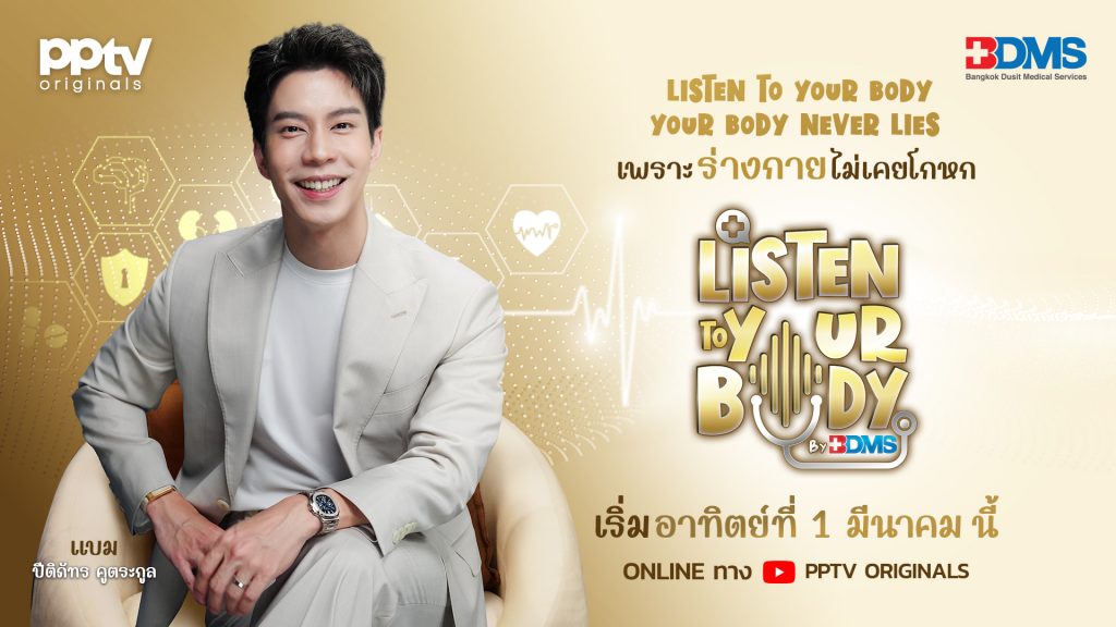 กดติดตาม แล้วมาเรียนรู้ที่จะ “ฟัง” ร่างกายเราให้ชัดเจนขึ้นแบบกระชับ และได้สาระครบจบในทุก Episode ในรายการพอดแคสต์ ‘Listen to Your Body by BDMS’ ทาง YouTube ช่อง PPTV Originals ทุกวันอาทิตย์ เวลา 18.00 น.เป็นต้นไป (สัปดาห์เว้นสัปดาห์) ประเดิมตอนแรกวันอาทิตย์ที่ 1 มีนาคม นี้