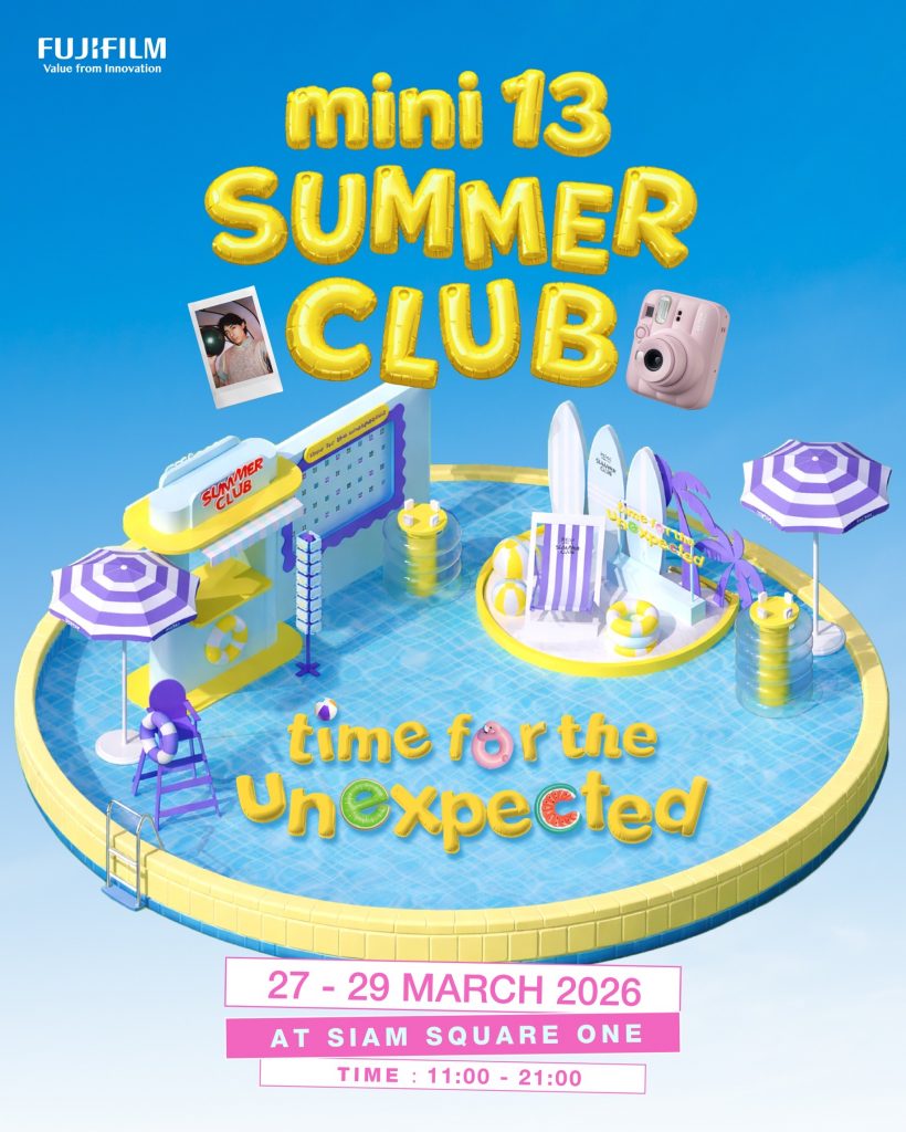 เตรียมตัวให้พร้อม ถึงเวลาแห่งความเริ่ด แชะโมเมนต์ และสนุกไปกับพลังของซัมเมอร์ ในป็อปอัพอีเวนต์สุดพิเศษ “instax mini 13 Summer Club” ที่จะมาสร้างสีสันบริเวณทางเชื่อม BTS Siam และ Siam Square One ระหว่างวันที่ 27–29 มีนาคม 2569 เวลา 11.00 – 21.00 น. ภายในงาน ผู้เข้าร่วมจะได้สัมผัสประสบการณ์แบบใกล้ชิดกับฟีเจอร์เด่นของ instax mini 13 ผ่านกิจกรรมในแต่ละสเตชัน พร้อมลุ้นรับของรางวัลสุดพิเศษ มาค้นพบเสน่ห์ของการถ่ายภาพอินสแตนท์ในแบบที่ไม่เคยสัมผัสมาก่อน ล็อกคิวไว้แล้วมาเริ่ดไปด้วยกัน