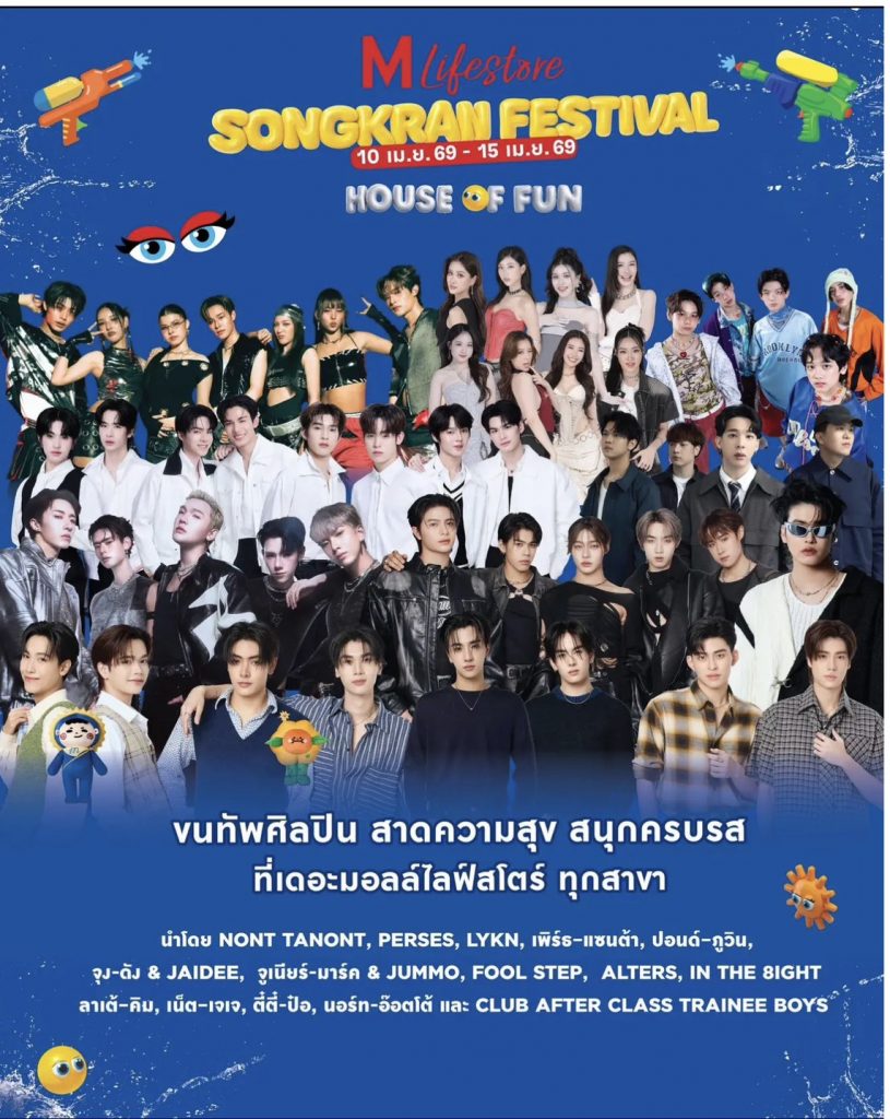 สัมผัสทุกโมเมนต์ความสุข สนุกครบรสกับทัพศิลปินคนดัง ที่มาร่วมสาดความสุขสนุกได้ทั้งครอบครัว ในงาน THE MALL LIFESTORE SONGKRAN FESTIVAL: HOUSE OF FUN ตั้งแต่วันที่ 10 – 15 เมษายน 2569 ที่ เดอะมอลล์ไลฟ์สโตร์ ท่าพระ, งามวงศ์วาน, บางแค และบางกะปิ