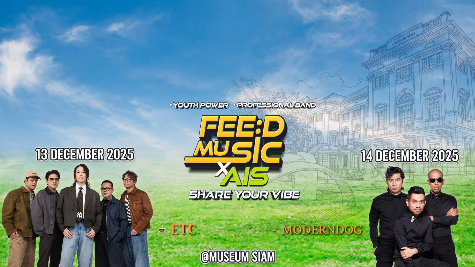 ปีนี้ผนึกกำลังกับ AIS ภายใต้ชื่อ FEED MUSIC x AIS : Share Your Vibe โดยเราจะเนรมิตมิวเซียมสยาม สถานที่ที่มีเสน่ห์และเอกลักษณ์เฉพาะตัวใจกลางเกาะรัตนโกสินทร์ ให้กลายเป็นพื้นที่แห่งการเชื่อมโยงทางดนตรี คอนเซ็ปต์หลักคือการ ‘ส่งต่อ Vibe จากรุ่นสู่รุ่น’ อย่างสมบูรณ์แบบ