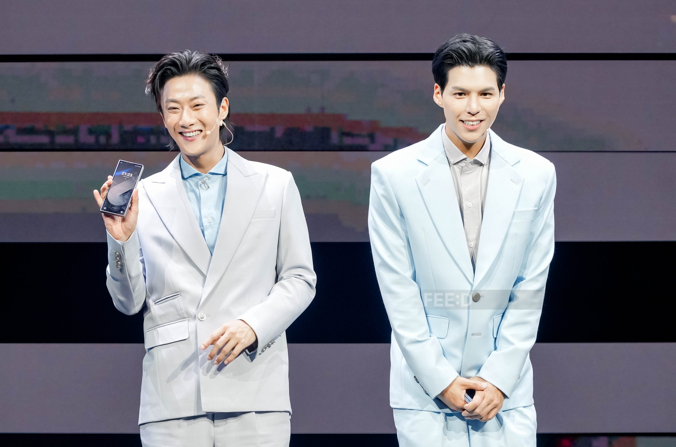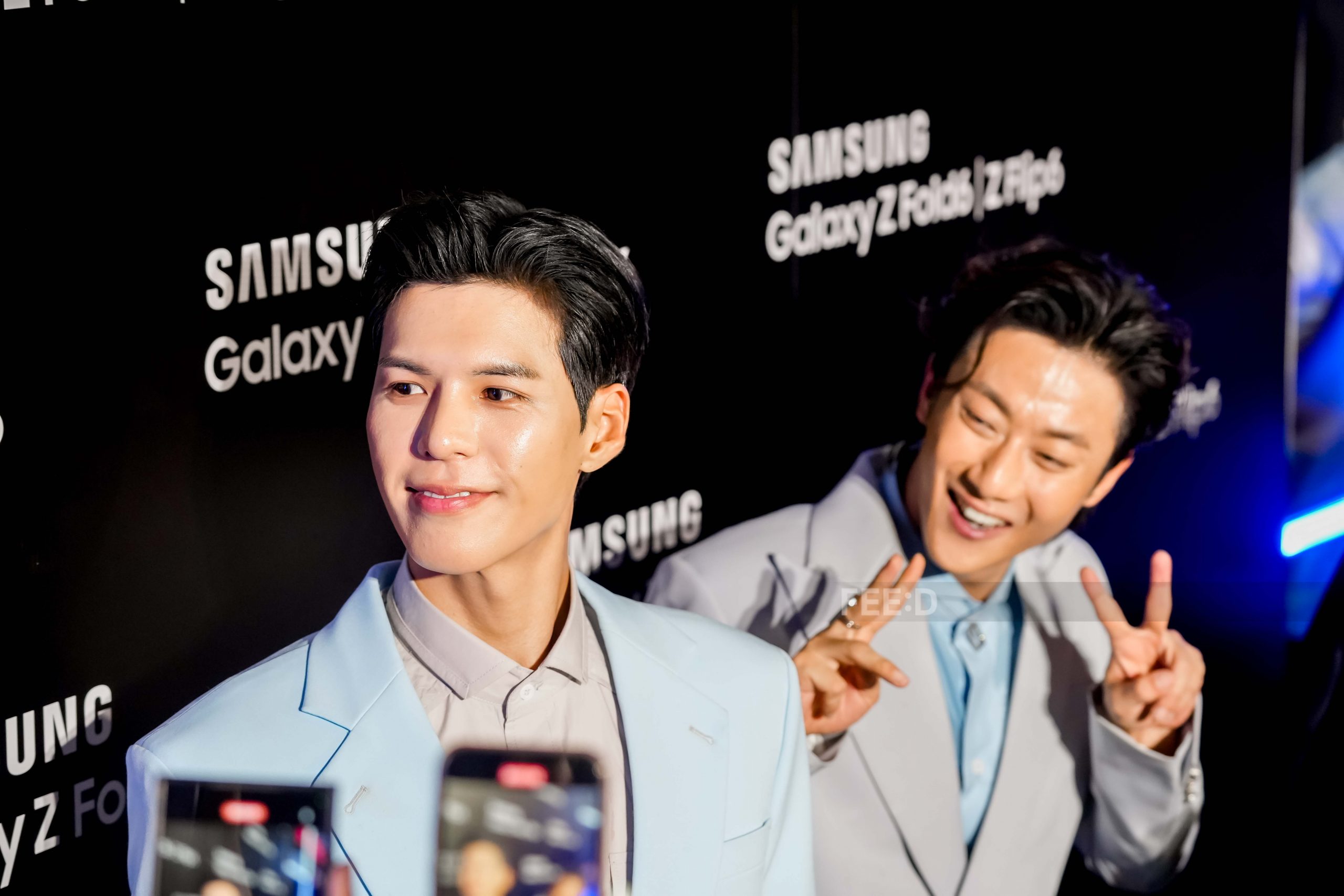 ล่าสุด “คัลแลน-พี่จอง” ปรากฏตัวในสูทสีฟ้าหล่อออร่า มาร่วมงาน Unfold Your Story เปิดตัว The new Galaxy ซีรีส์ล่าสุดของ Galaxy Z และได้ให้สัมภาษณ์กับสื่อมวลชนถูกชมว่าหล่อมาก ซึ่งทั้งสองคนบอกว่าปกติไม่ค่อยได้ใส่ชุดแบบนี้รู้สึกแปลก